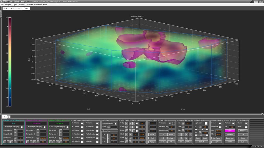 работа с двумерным и трёхмерным представлением данных георадиолокационного