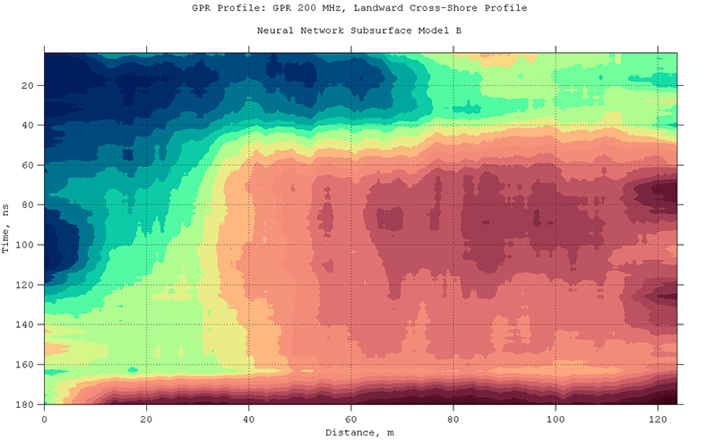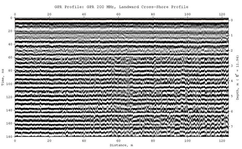 с центральной частотой 200 МГц на морском пляже. Профилирование выполнялось в
