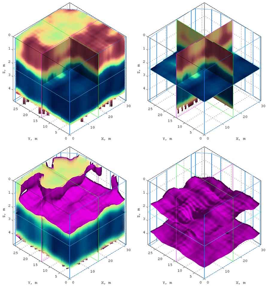разрезы объединяются в трёхмерный массив данных, где значения атрибута между