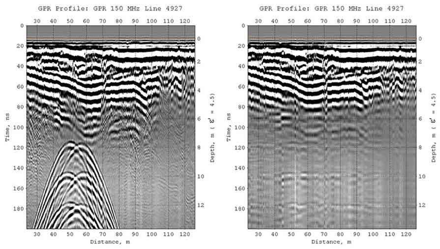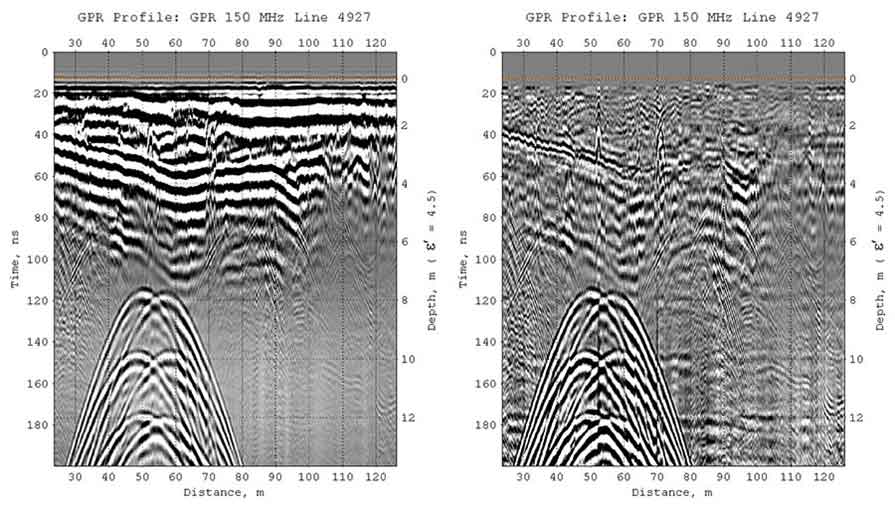 ГЕОРАДАР-ЭКСПЕРТ реализовано удаление помех с помощью пространственной